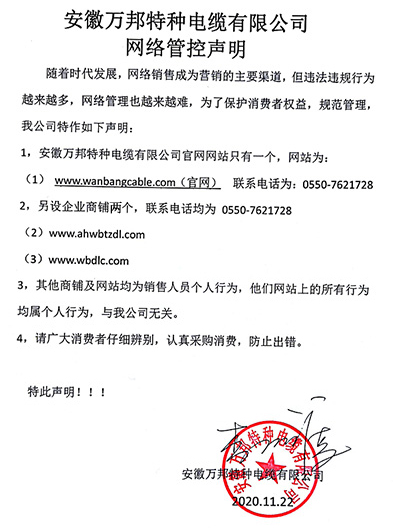 鄭重聲明:安徽萬邦特種電纜有限公司官方網站為:www_wanbangcable_com.zoyrqfjm.cn,除此之外無任何子網站或合作網站,其余均為假冒偽劣。電話:0550-7621728 13485756353 地 址:安徽省天長市滁州高新技術產業開發區經四路29號